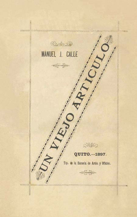 Calle, Manuel J. 1897. Un viejo artículo y algunas reflexiones oportunas: opúsculo de actualidad. Quito, Ecuador : Tip. de la Escuela de Artes y Oficios.