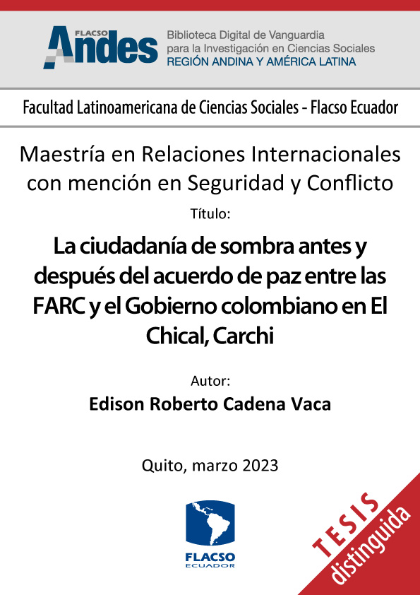 Cadena Vaca, Edison Roberto. 2023. La ciudadanía de sombra antes y después del acuerdo de paz entre las FARC y el Gobierno colombiano en El Chical, Carchi. Tesis de maestría, Flacso Ecuador.