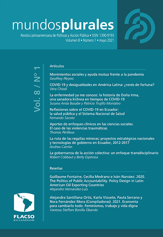 Flacso Ecuador (Facultad Latinoamericana de Ciencias Sociales sede Ecuador) y Universidad Nacional de Colombia. 2021. Mundos Plurales. Revista Latinoamericana de Políticas y Acción Pública, 8(1).