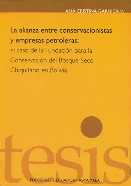Garnica V., Ana Cristina. 2008. La alianza entre conservacionistas y empresas petroleras: el caso de la Fundación para la conservación del Bosque Seco Chiquitano en Bolivia. Quito: FLACSO Ecuador / Abya-Yala.