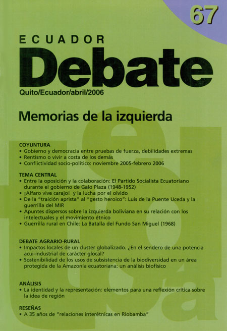 Ecuador Debate. Memorias de la izquierda. Centro Andino de Acción Popular. Quito: CAAP, (no. 67, abril 2006): 194 p. ISSN: 1012-1498