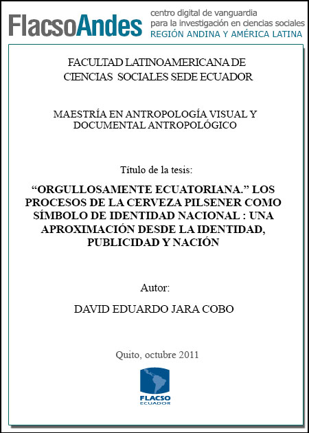 Jara, D. E. (2011). Orgullosamente ecuatoriana. Los procesos de construcción de la cerveza Pilsener como símbolo de identidad nacional : una aproximación desde la identidad, publicidad y nación. (Tesis de Maestría en Antropología Visual y Documental Antropológico). FLACSO Sede Ecuador, Quito.