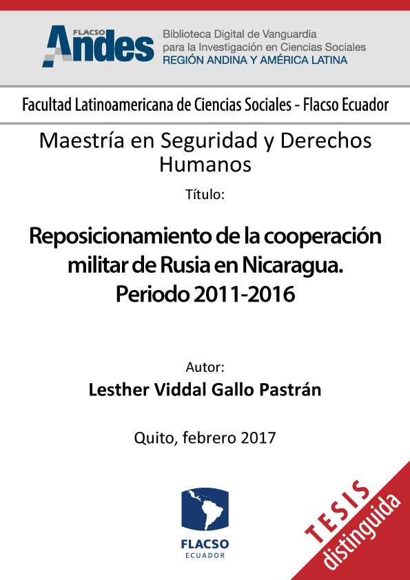 Gallo Pastrán, Lesther Viddal. 2017. Reposicionamiento de la cooperación militar de Rusia en Nicaragua. Periodo 2011-2016. Tesis de maestría, Flacso Ecuador.