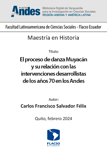 Salvador Félix, Carlos Francisco. 2024. El proceso de danza Muyacán y su relación con las intervenciones desarrollistas de los años 70 en los Andes. Tesis de maestría, Flacso Ecuador.
