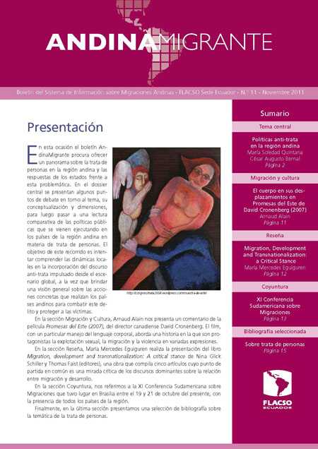 Andina Migrante. FLACSO Sede Ecuador. Programa de Sociología, Sistema de Información sobre Migraciones Andinas. Quito : FLACSO, (no.11, noviembre 2011) : 16 p.