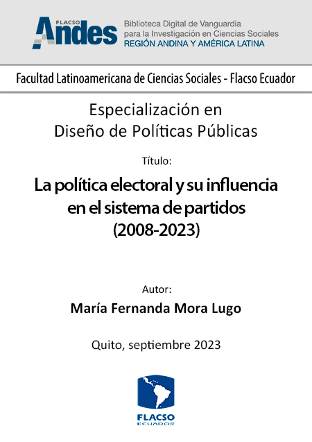 Mora Lugo, María Fernanda. 2023. La política electoral y su influencia en el sistema de partidos (2008-2023). Tesina de especialización, Flacso Ecuador.
