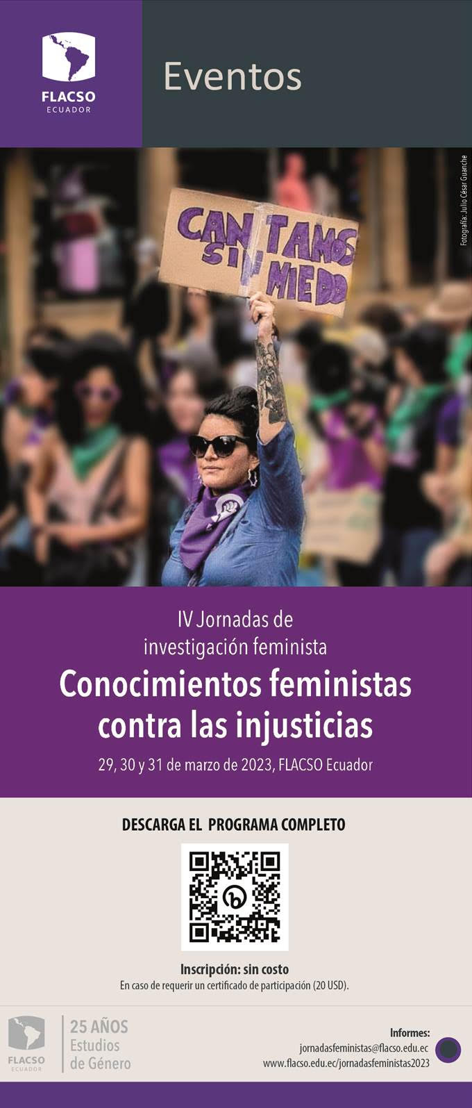FLACSO Ecuador : Estudios de Género - Evento IV Jornadas de investigación feminista Conocimiento feminista contra las injusticias 31 de marzo de 2023 - 16:15 - 17:45 - FLACSO Ecuador, Quito. Con la participación de Angélica Motta - Universidad San Marcos.