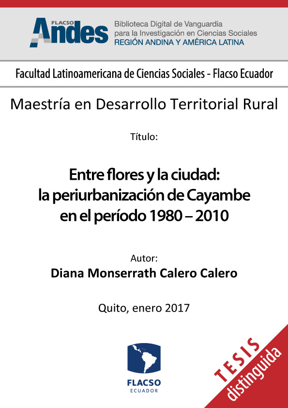 Calero Calero, Diana Monserrath. 2017. Entre flores y la ciudad: la periurbanización de Cayambe en el período 1980 – 2010. Tesis de maestría, Flacso Ecuador.