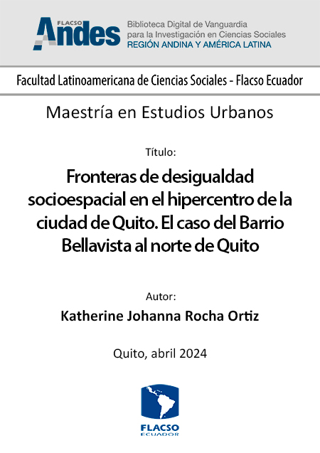 Rocha Ortiz, Katherine Johanna. 2024. Fronteras de desigualdad socioespacial en el hipercentro de la ciudad de Quito. El caso del Barrio Bellavista al norte de Quito. Tesis de maestría, Flacso Ecuador.