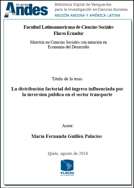 Guillén Palacios, María Fernanda. 2016. La distribución factorial del ingreso influenciada por la inversión pública en el sector transporte. Tesis de maestría, Flacso Ecuador.