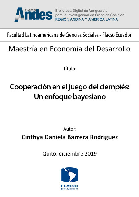 Barrera Rodríguez, Cinthya Daniela. 2019. Cooperación en el juego del ciempiés: Un enfoque bayesiano. Tesis de maestría, Flacso Ecuador.
