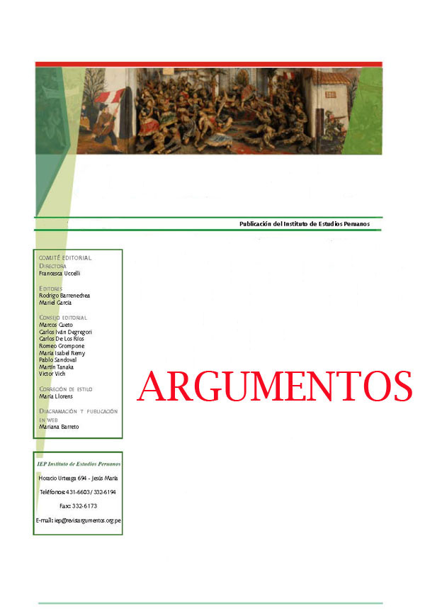 Argumentos [en línea]. Lima, Perú, Instituto de Estudios Peruanos. (año 1, n.1, marzo 2006- ). [http://www.revistargumentos.org.pe/index.php?fp_plantilla_seleccionada_temporal=75], [Consulta: 2 de junio de 2009]