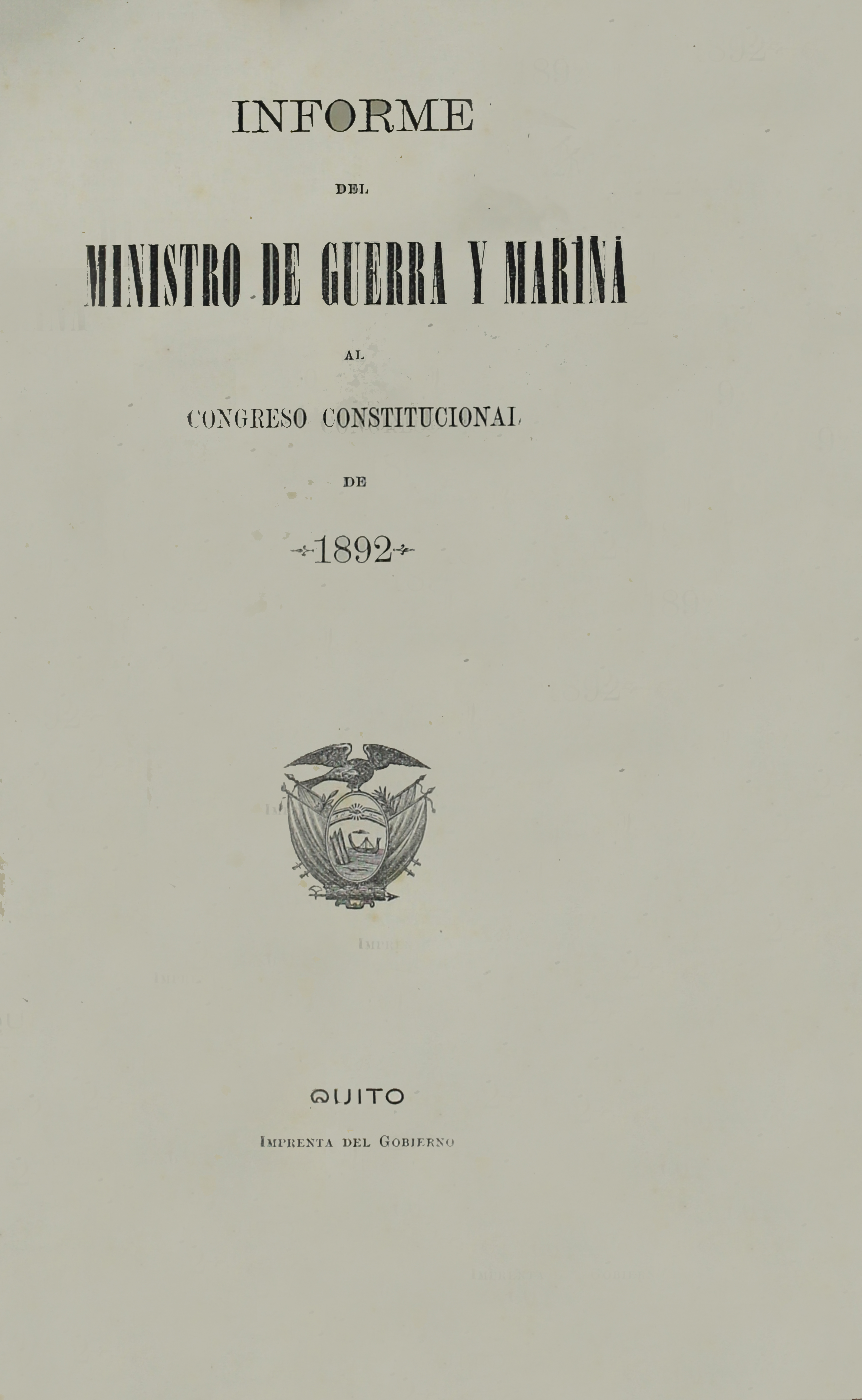 Ministerio de Guerra y Marina. 1892. Informe del Ministro de Guerra y Marina al Congreso Constitucional de 1892. Quito, Ecuador : Imprenta del Gobierno.