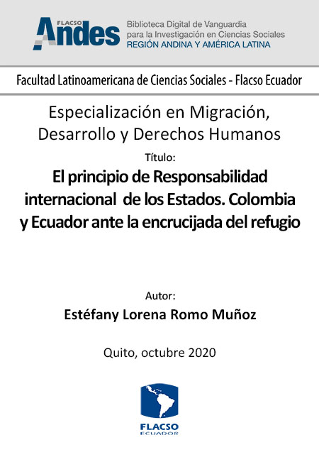 Romo Muñoz, Estéfany Lorena. 2020. El principio de Responsabilidad internacional de los Estados. Colombia y Ecuador ante la encrucijada del refugio. Tesina de especialización, Flacso Ecuador.