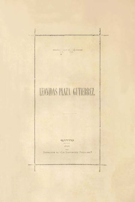 Plaza, Leonidas. 1896. Leonidas Plaza Gutiérrez. [Cuenca, Ecuador] : [ Imprenta de La Educación Popular ].