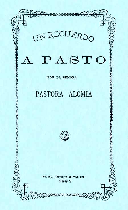 Alomía, Pastora y Lisandro G. Maldonado. 1883. Un recuerdo a Pasto. Bogotá, Colombia : Imprenta de La Luz.