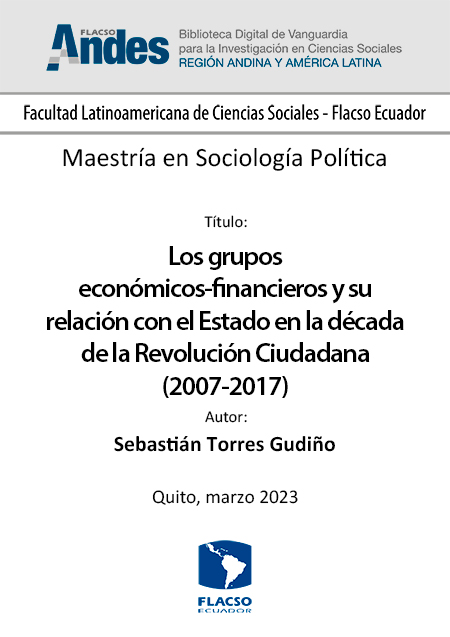 Torres Gudiño, Sebastián. 2023. Los grupos económicos-financieros y su relación con el Estado en la década de la Revolución Ciudadana (2007-2017). Tesis de maestría, Flacso Ecuador.