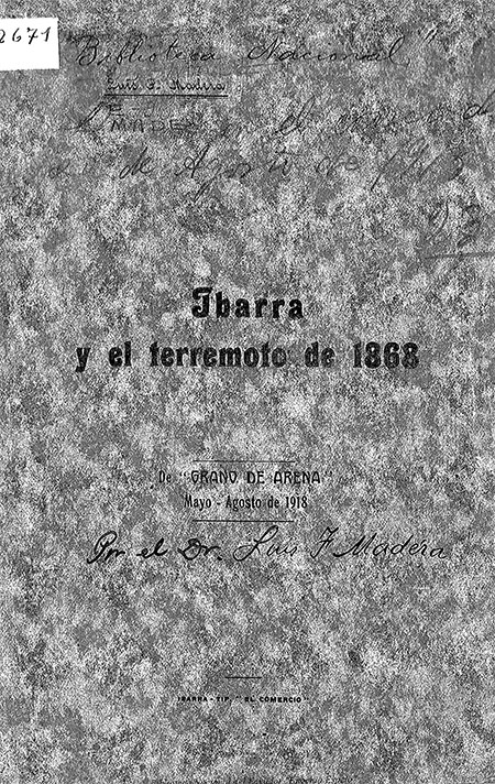 Madera, Luis .1918. Ibarra y el terremoto de 1868. Ibarra : Tip. El Comercio.