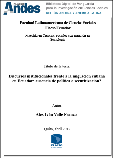 Valle Franco, Alex Iván. 2012. Discursos institucionales frente a la migración cubana en Ecuador : ¿ausencia de política o securitización?. Tesis de maestría, Flacso Ecuador.