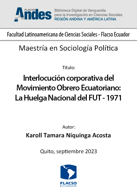 Niquinga Acosta, Karoll Tamara. 2023. Interlocución corporativa del Movimiento Obrero Ecuatoriano: La Huelga Nacional del FUT - 1971. Tesis de maestría, Flacso Ecuador.