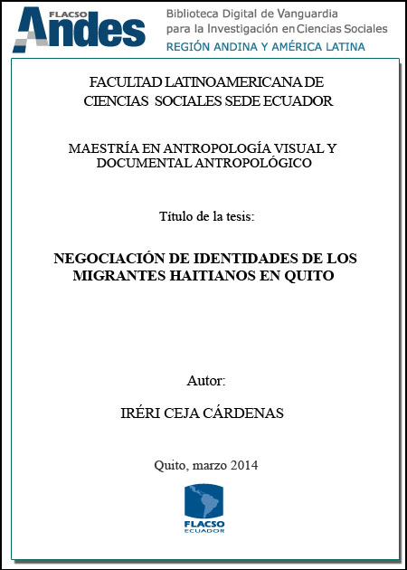 Ceja Cárdenas, Iréri. 2014. Negociación de identidades de los migrantes haitianos en Quito. Tesis de maestría, Flacso sede Ecuador.
