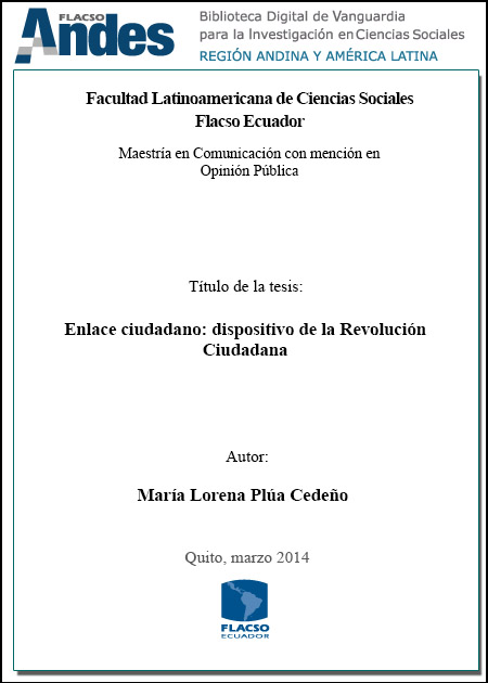 Plúa Cedeño, María Lorena. 2014. Enlace ciudadano: dispositivo de la Revolución Ciudadana. Tesis de maestría, Flacso Ecuador.