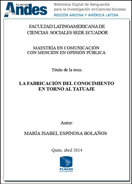 Espinosa Bolaños, María Isabel. 2014. La fabricación del conocimiento en torno al tatuaje. Tesis de maestría, Flacso sede Ecuador.