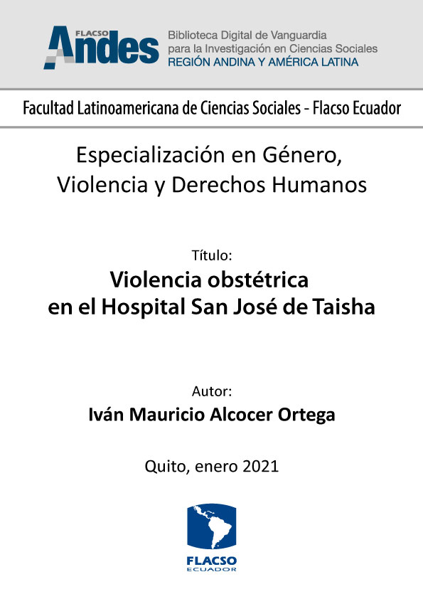 Alcocer Ortega, Iván Mauricio. 2021. Violencia obstétrica en el Hospital San José de Taisha. Tesina de especialización, Flacso Ecuador.