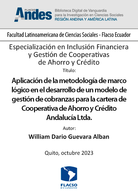 Guevara Alban, William Dario. 2023. Aplicación de la metodología de marco lógico en el desarrollo de un modelo de gestión de cobranzas para la cartera de Cooperativa de Ahorro y Crédito Andalucía Ltda. Tesina de especialización, Flacso Ecuador.