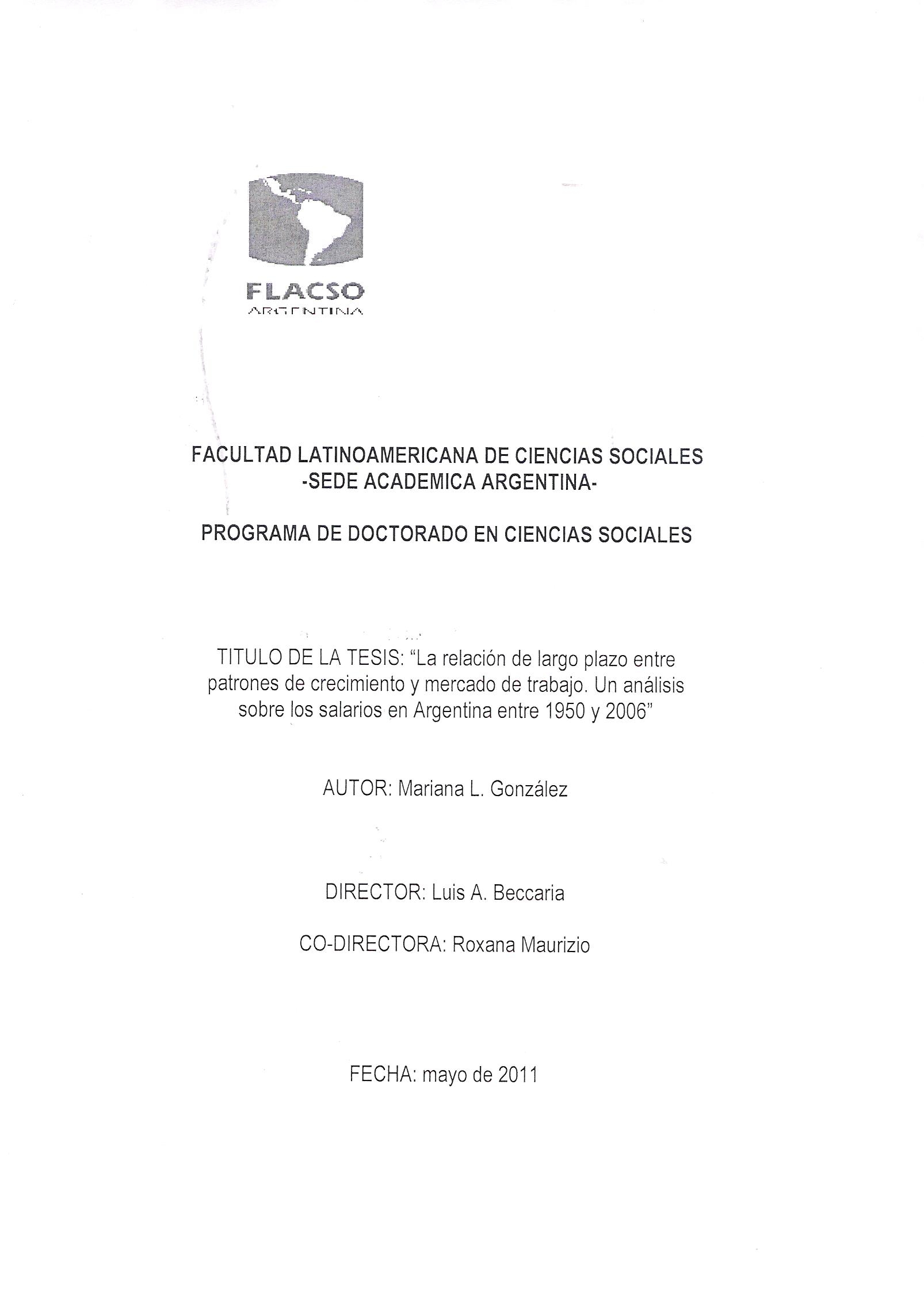 González, Mariana Laura (2011). La relación de largo plazo entre patrones de crecimiento y mercado de trabajo : un análisis sobre los salarios en Argentina entre 1950 y 2006. Tesis de Doctorado. FLACSO. Sede Académica Argentina, Buenos Aires.