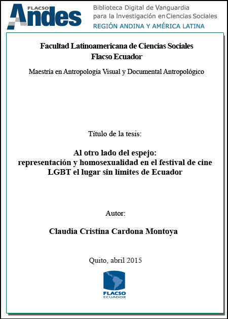 Cardona Montoya, Claudia Cristina. 2015. Al otro lado del espejo: representación y homosexualidad en el festival de cine LGBT "El Lugar sin límites" de Ecuador. Tesis de maestría, Flacso Ecuador.