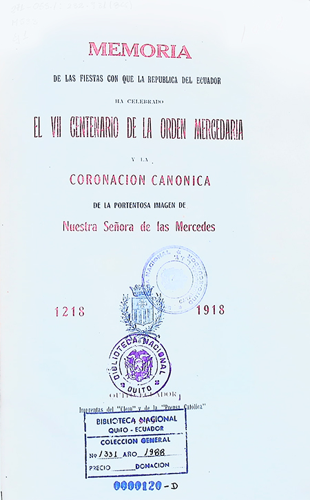 Quito, noble cuna de tantos varones ilustres, que forman con sus nombres una aureola brillante e inmortal sobre la frente de la reina de los Andes.