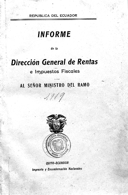 En obedecimiento a lo dispuesto en el ordinal (/) del Art. 10 del Decreto Ejecutivo, expedido el 31 de diciembre del año próximo pasado, por el que se reglamentan las atribuciones y deberes de la Dirección General de Rentas, adscrita al Portafolio de su digno cargo, cuya Jefatura inmerecidamente tuvo a bien confiarme el Supremo Gobierno, el 8 de marzo del presente año; cúmpleme manifestar a Ud. que el resultado práctico obtenido apenas puede apreciarse, dado el corto lapso de tiempo, como son los seis meses de existencia que ella tiene.