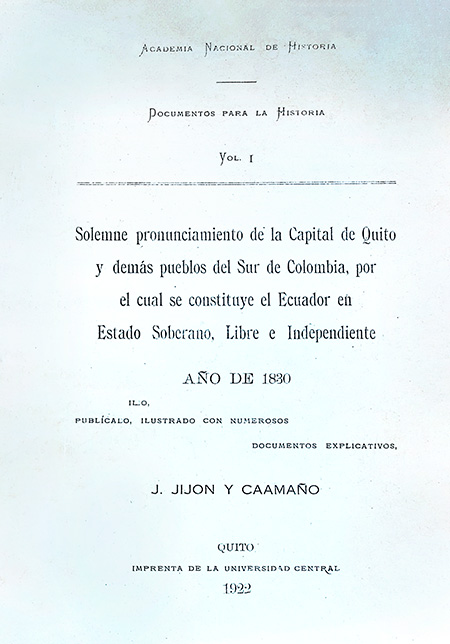 La Academia Nacional de Historia, en su anhelo de contribuir a que el pasado de la Patria resurja de las sombras del olvido mediante estudios críticos y bien fundamentados, para orientación y enseñanza de las generaciones presentes y futuras, ha resuelto publicar aquellos documentos que, por su extensión, no pueden tener cabida en los números del Boletín que edita, en volúmenes independientes intitulados Documentos para la Historia, que, de tiempo en tiempo, verán la luz pública.