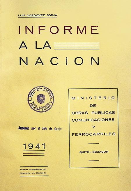 Altamente distinguido por el señor doctor don Carlos Arroyo del Río, al llamarme a colaborar desde el comienzo de su Gobierno en la delicada Cartera de Obras Públicas y Comunicaciones, acepté gustoso la invitación, con la seguridad de que mi patriótico entusiasmo procuraría corresponder a la confianza que en mí depositaba el nuevo Mandatario, quien aportaba al Poder, además de su indiscutible capacidad y sólido prestigio, el más sincero y decidido afán de propender con eficacia a la reconstrucción nacional.