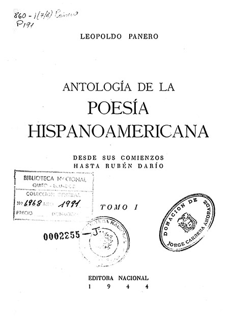 Al escoger y agrupar los poemas que integran esta Antología, he querido, sobre todo, ofrecer, en generoso conjunto, una visión de la poesía Iberoamericana en lengua española escrita en América. No todos los poemas incluidos son, sin embargo, de inspiración estrictamente iberoamericana. Tampoco responden todos al mismo nivel de exigencia estética.