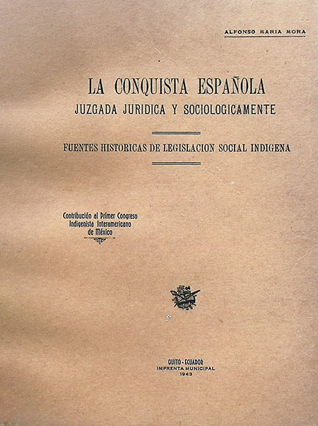 Con distinguido afecto y predilección muy sincera, dedicamos a la Asociación Estudiantil Universitaria del Azuay, que representa una alborada de cultura intelectual y un futuro de amplios horizontes, este modesto trabajo de investigación sintética sobre hondos problemas sociales de la América Española y de la Real Audiencia de Quito, durante el período colonial, como un aporte de horas de vigilia para las grandes obras reivindicadoras y de positivo beneficio social que la juventud ecuatoriana debería realizar en pro del indigenismo y de las clases obreras.