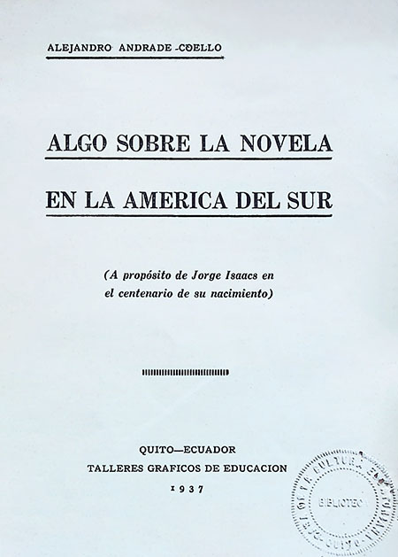 Colombia principesca por sus letras, vibrante por su lira, ágil por sus concepciones ha sido un privilegiado vergel de la novela, en el que la galanura y el aroma pictórico han purificado la atmósfera, alejando el mal gusto y la incorrección del lenguaje.