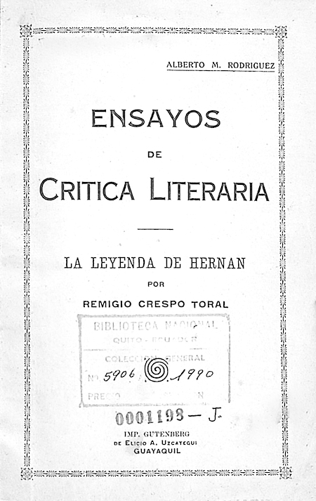 En diciembre de 1917 empezó a circular La Leyenda de Hernán. Desde entonces han transcurrido seis años, y no conozco crítica alguna de la obra. Aunque aficionados no maestros en materias literarias queremos ensayar un estudio de este poema, ya que ninguno de los buenos literatos que hay dentro y fuera de la República se ha tomado ese trabajo. La crítica debe seguir a toda obra del ingenio como necesario complemento; entendiendo por crítica el significado justo de la palabra: un juicio cabal.