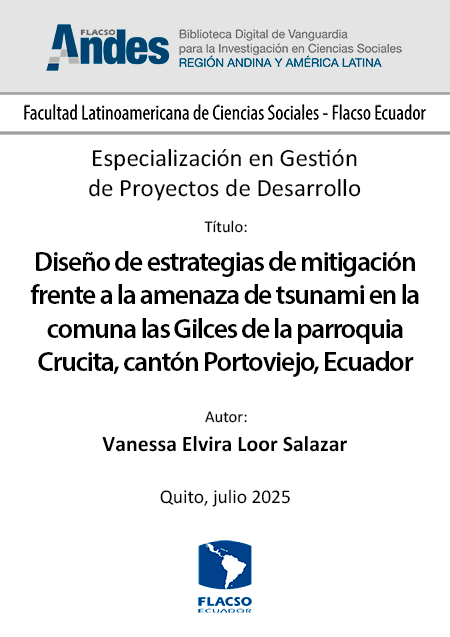 La comuna Las Gilces, ubicada en la parroquia Crucita del cantón Portoviejo, enfrenta una alta exposición a la amenaza de tsunami debido a su localización geográfica en la zona de subducción entre las placas tectónicas de Nazca y Sudamericana. Esta condición, sumada a factores como el crecimiento urbano desordenado, la ausencia de infraestructura segura para la evacuación y la limitada planificación territorial incrementa la vulnerabilidad de su población. En este contexto, la presente investigación tuvo como objetivo diseñar un proyecto de mitigación de riesgos frente a tsunami, mediante estrategias estructurales y no estructurales que fortalezcan la prevención comunitaria.