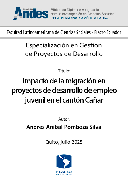 Esta tesina tiene como objetivo comprender cómo el efecto de la migración en el cantón Cañar puede influir en la eficacia de los programas de trabajo para jóvenes en áreas con esta dinámica. El público meta se centra en jóvenes de 25 a 30 años, dado que este grupo es especialmente impactado por las dinámicas migratorias, las cuales modifican su involucramiento en programas y su acceso a oportunidades de trabajo locales.